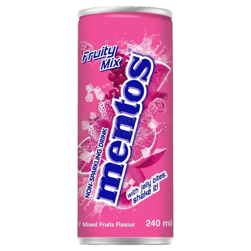 Mentos Fruity Mix is a colorful carbonated soda that captures the playful taste of your favorite Mentos fruit candies. Featuring flavors like strawberry, orange, grape and more, it’s a sweet, bubbly, and fun drink for all ages.